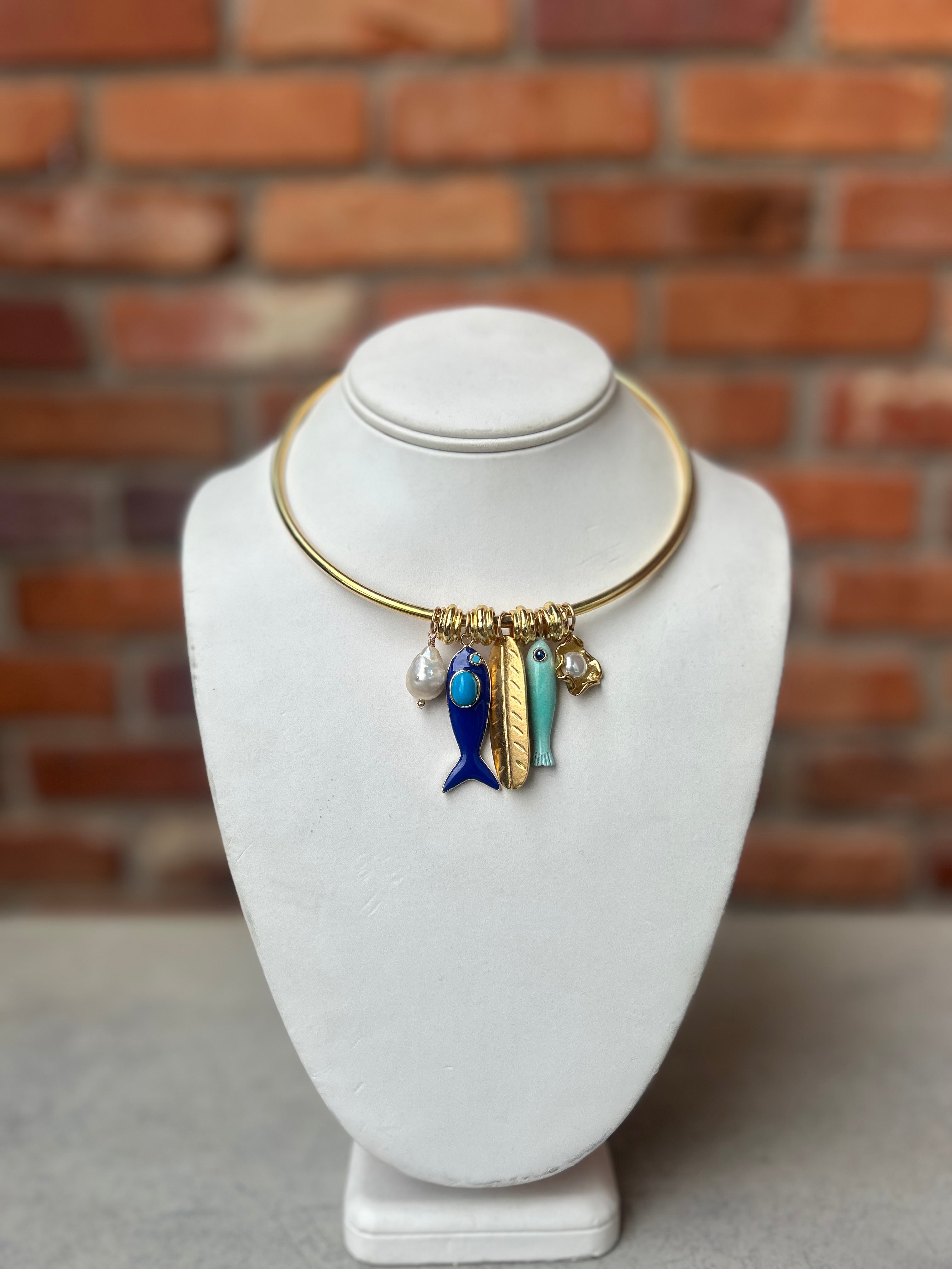 Saylor Necklace, Blue Fish/Feather on Collar