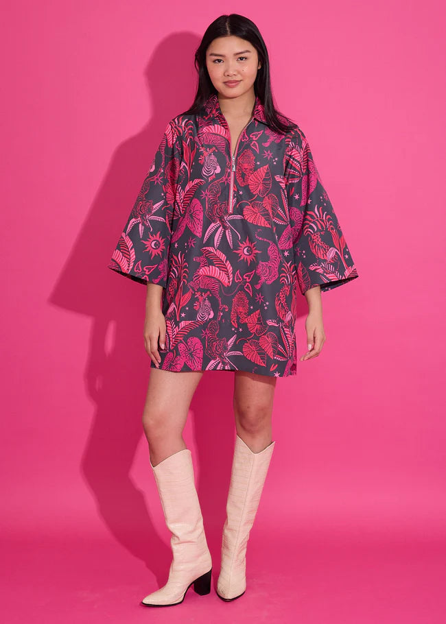 The Dakota Dress turns heads with its serpent print and relaxed, swingy silhouette. Finished with a zip-front neckline and statement sleeves, it’s the perfect mix of playful and edgy.