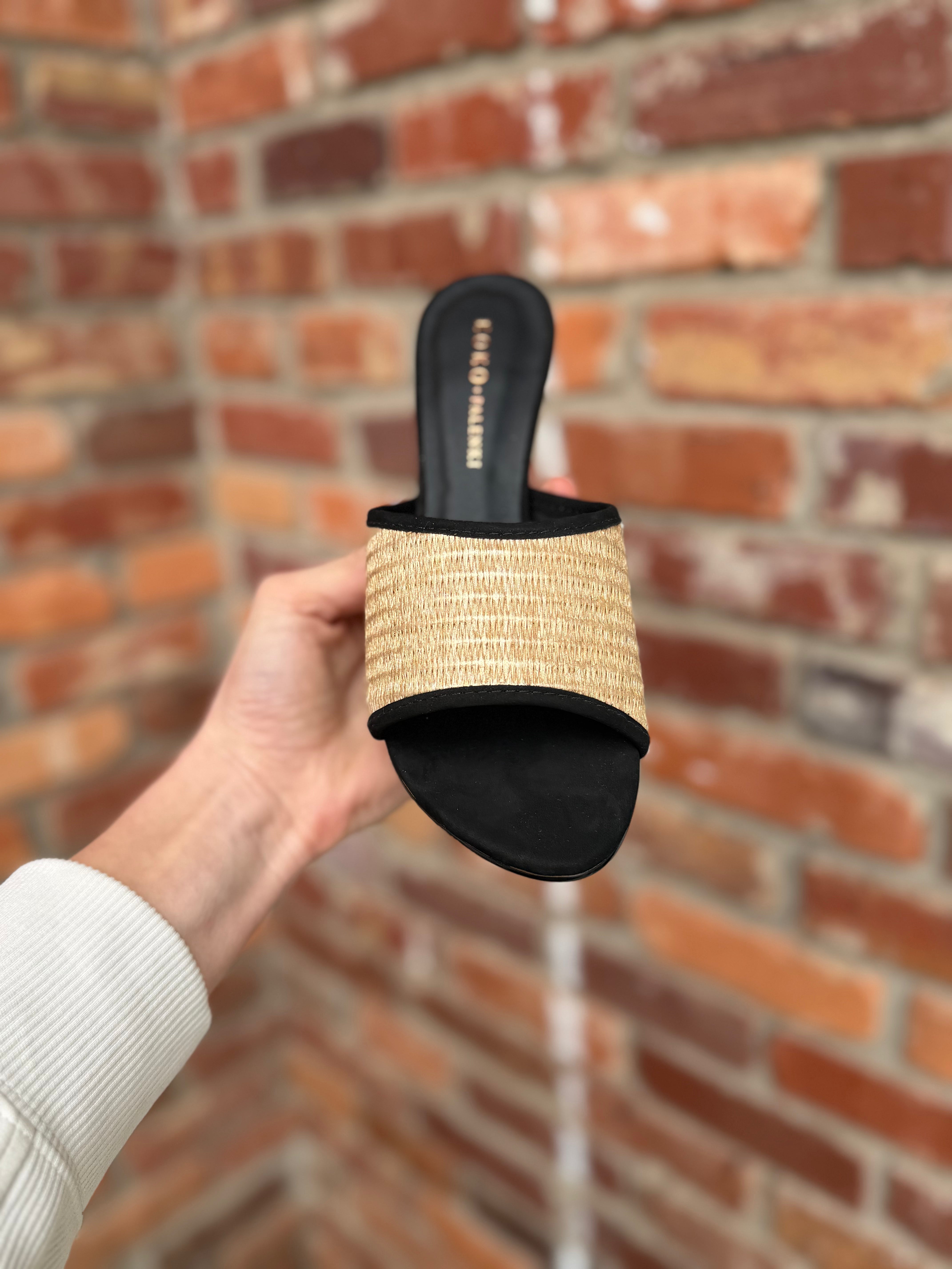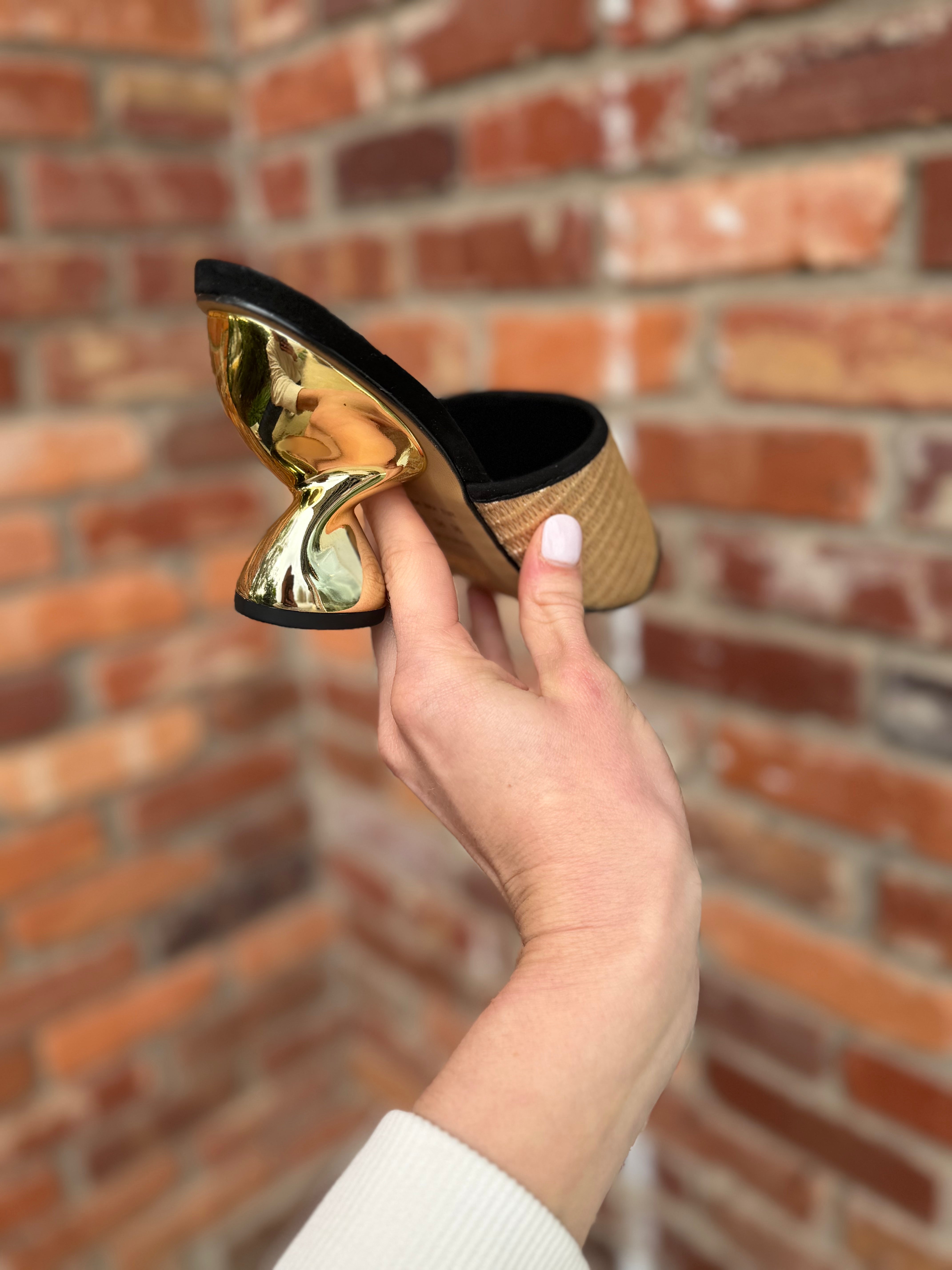 Thea Heel, Black Nubuck Raffia