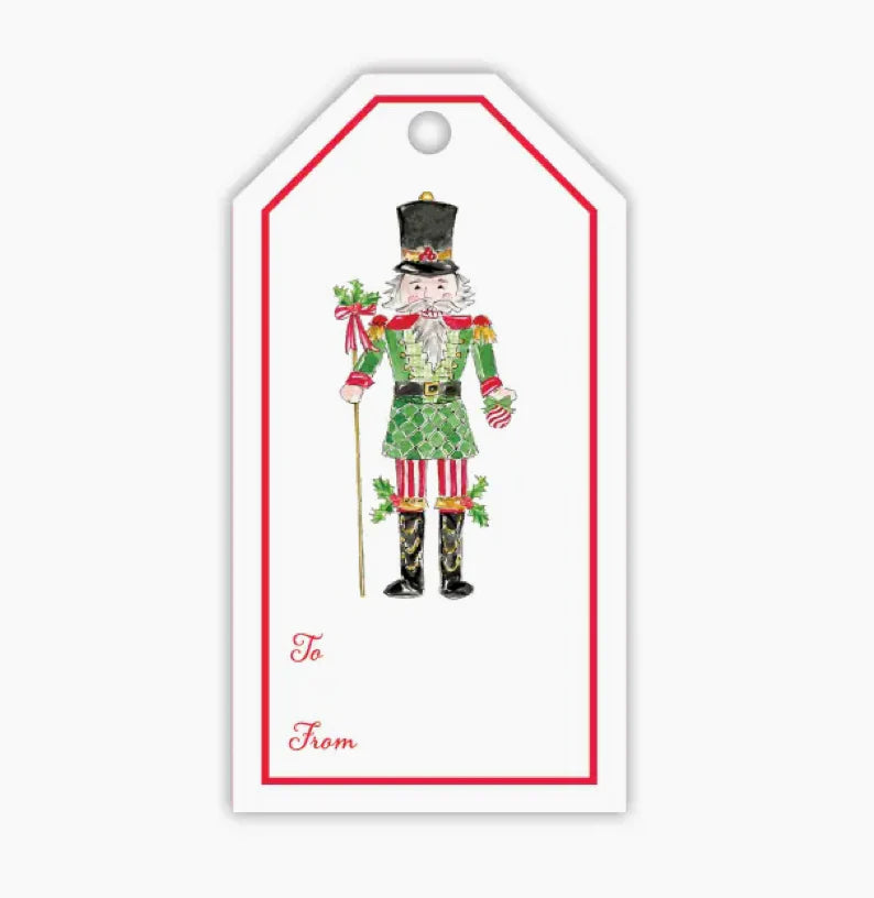 Gift Tag-Handpainted Poinsettia Nutcracker Red and Green