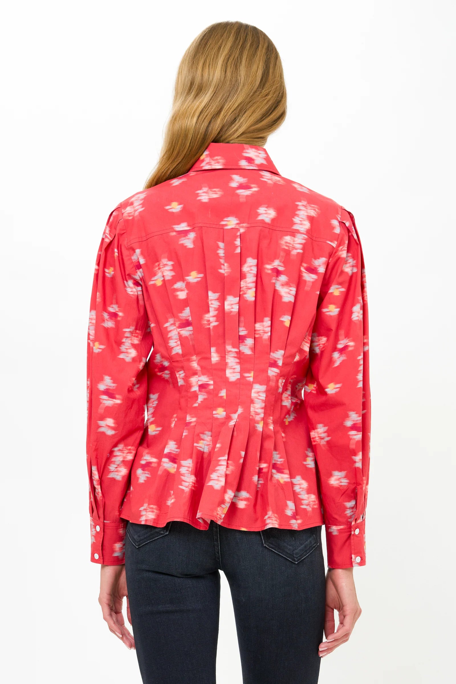 - Long bouffant sleeves with tailored cuffs