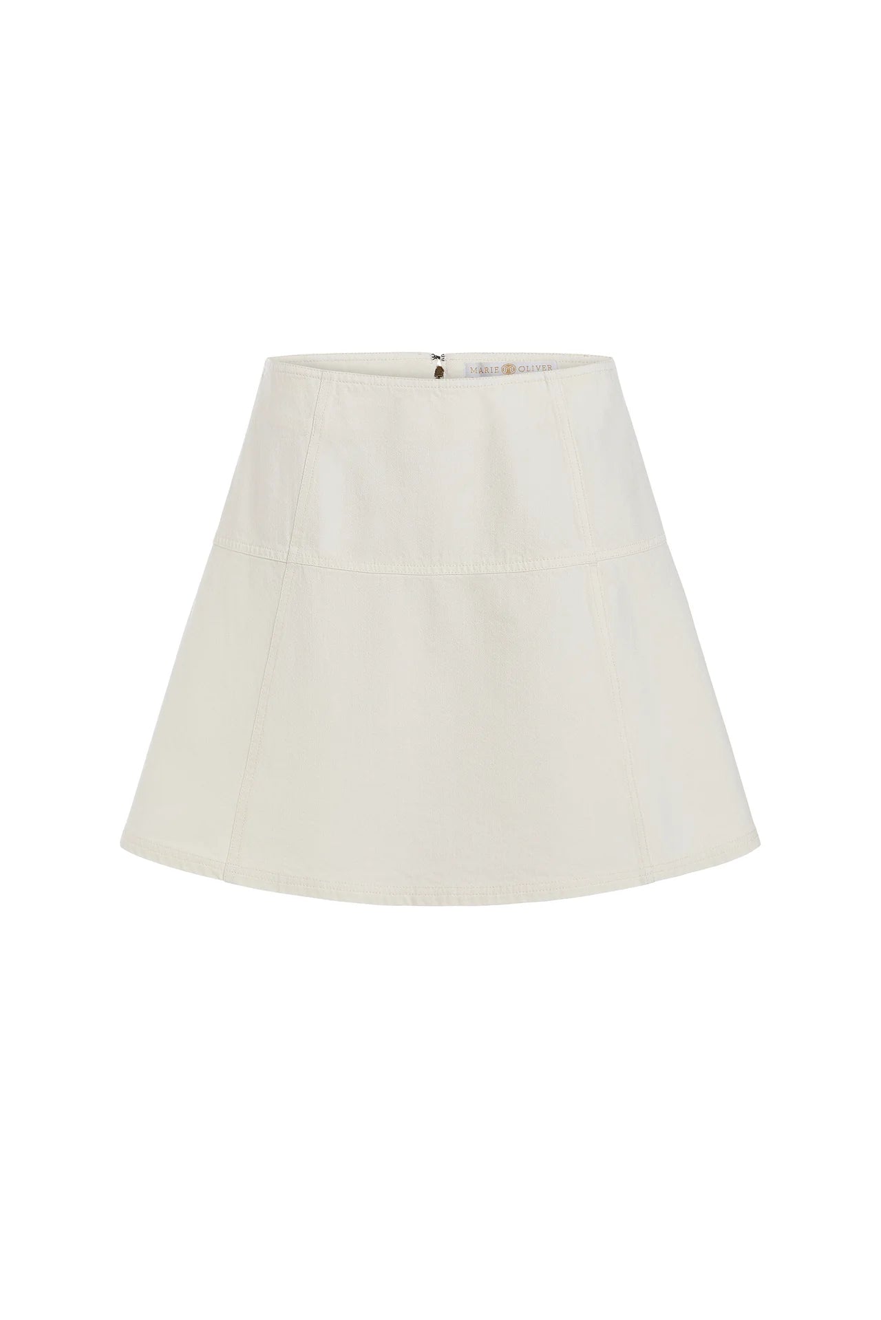 Our best-selling mini skirt returns for Spring in classic white denim. This versatile mini is fitted at the waist and hips with a gentle flare to create a flattering and playful silhouette. The lightweight skirt pairs beautifully with your favorite warm weather tops and knits, and easily substitutes for shorts on warm days.