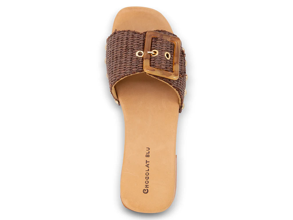 Earthy texture meets modern edge in this beautifully crafted platform slide. The richly woven upper adds depth and dimension, while the buckle detail creates a bold focal point with a touch of vintage-inspired charm.