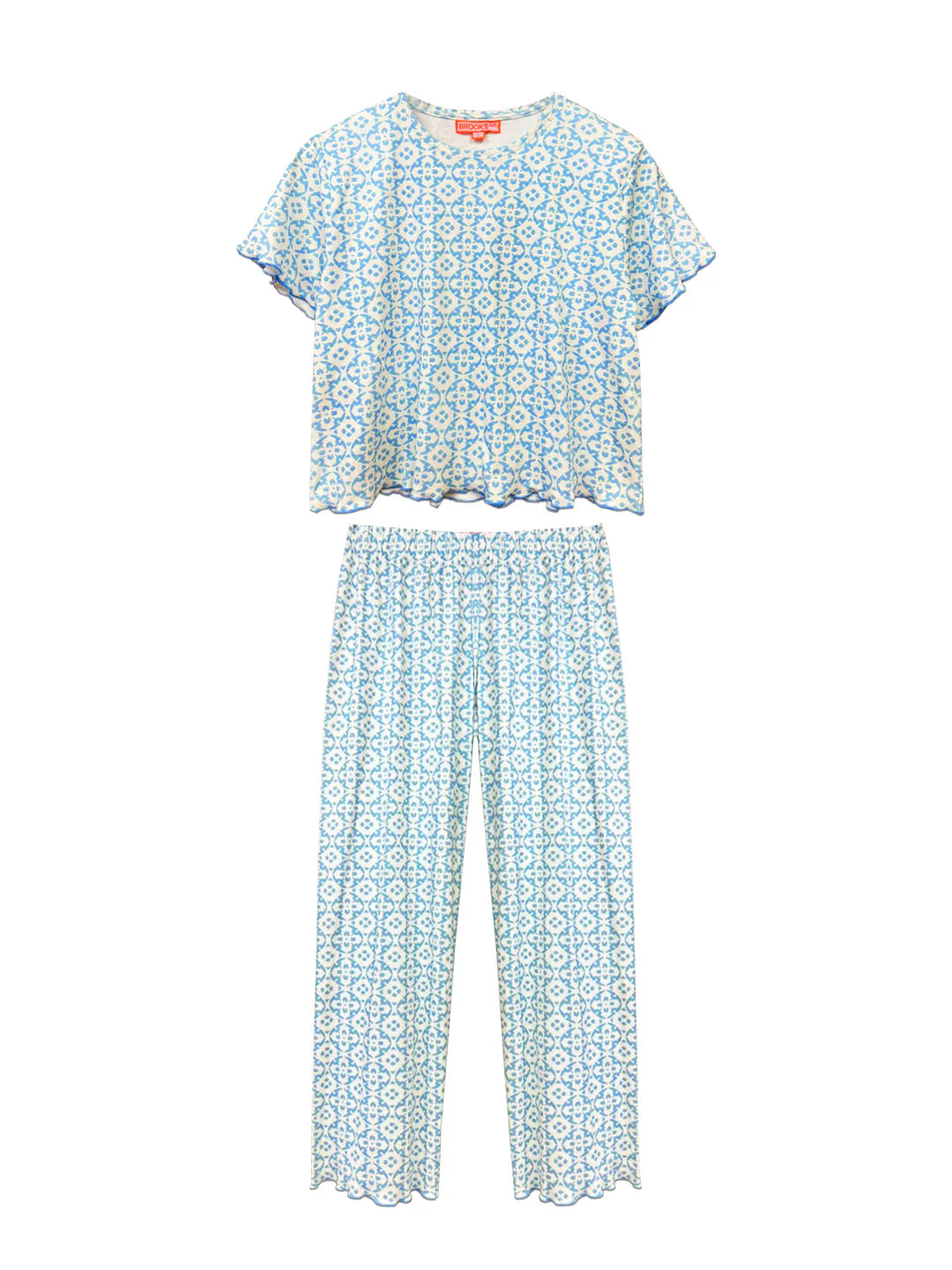 Margarie Pajama Short Sleeve & Pants - Porto Blue