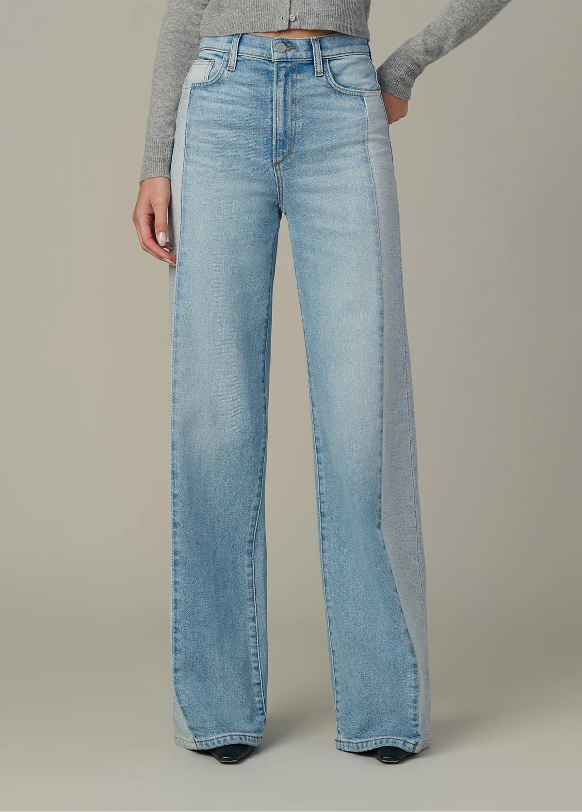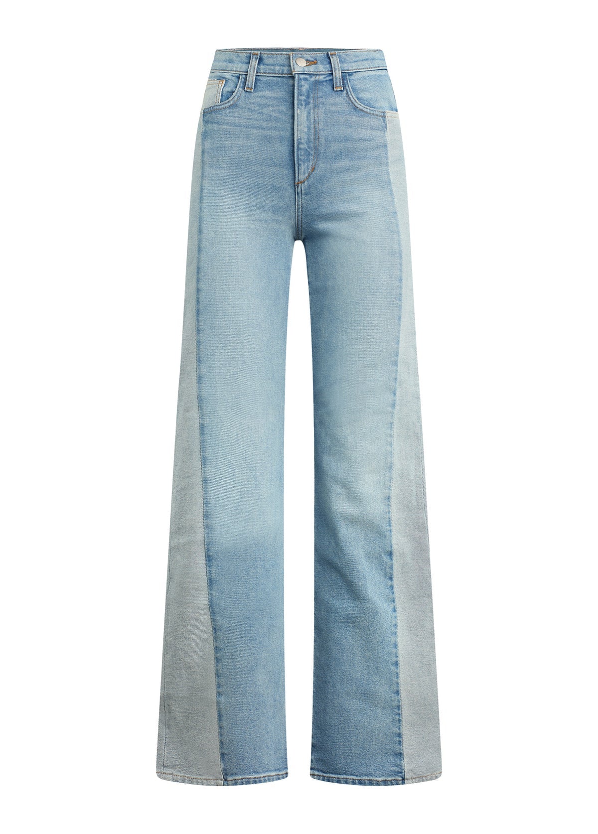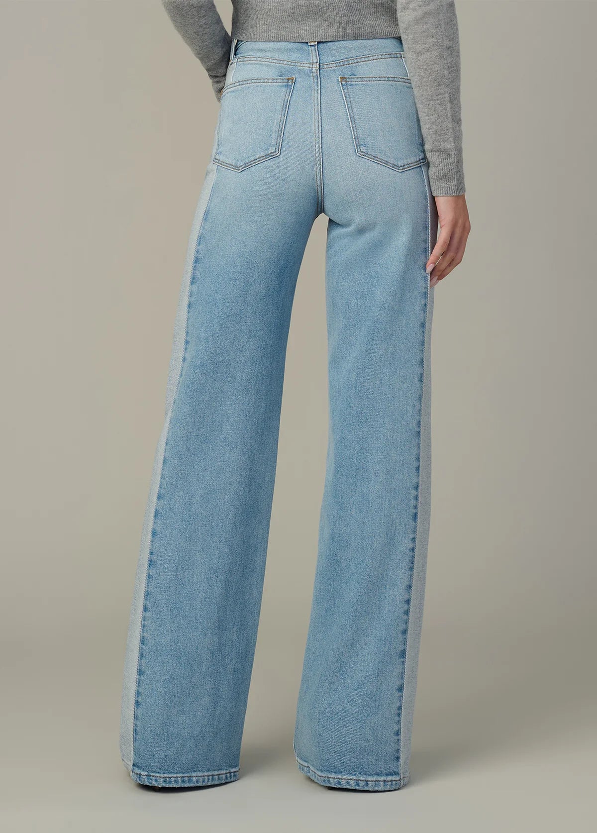 A high rise and slim fit through the waist and hip with a full-length wide leg.