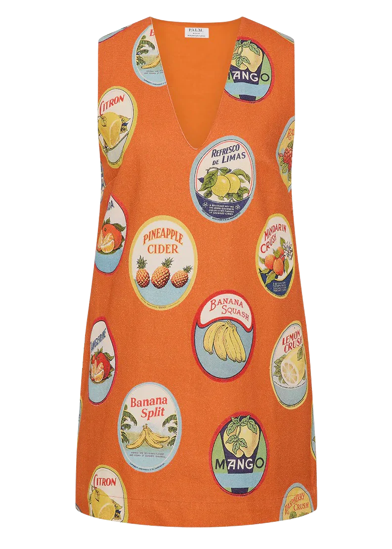 The Louis Mini Dress in our exclusive La Fruta print is a new mini silhouette crafted from a textured Cotton canvas. Designed for effortless wear, it offers a boxy shift silhouette and a flattering deep V-neckline. Please refer to our size and fit guide for further fit details.